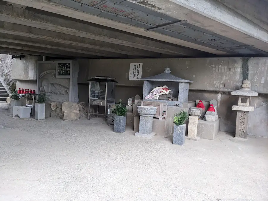 - Bajo el puente donde supuestamente durmió Kobo Daishi. Es muy limpio y seguro. A pocos metros del tsuyado del templo toyogabashi, se baja por unas escaleras. 十夜ヶ橋 御野宿所