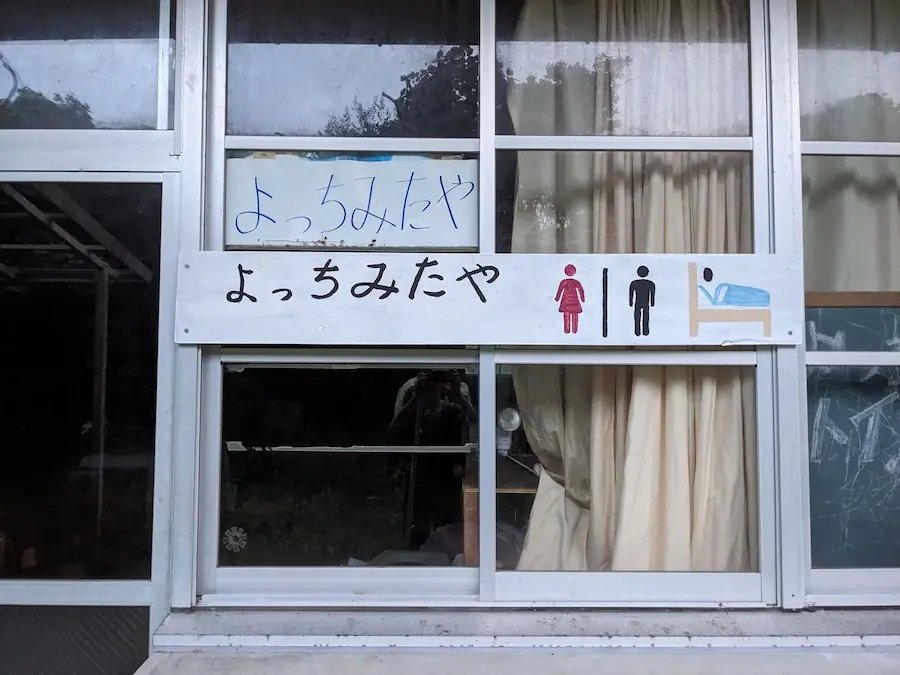 - Kyuoi Elementary School Escuela abandonada a solo 2 km del templo 20 donde se permite acampar. Hay varias zonas techadas, baños con caja de donación y una canilla/grifo exterior. 旧大井小学校 ME QUEDÉ AQUÍ