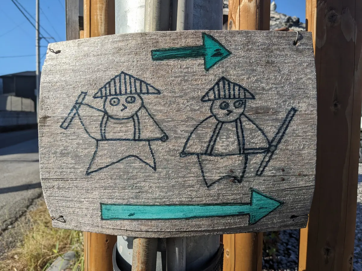 Henro Goya 遍路小屋・へんろ小屋 — Henro huts. Espacios de descanso para peregrinos que asemejan a micro cabañas abiertas. Hay al menos unas 50 construidas y dispersas por toda la isla. Suelen ser construidas y mantenidas por las comunidades locales. En algunas está permitido pernoctar, en otras no, y las hay que no aclaran. Muchas veces los carteles están en japonés. Usa el traductor de google para saber si es correcto dormir allí.